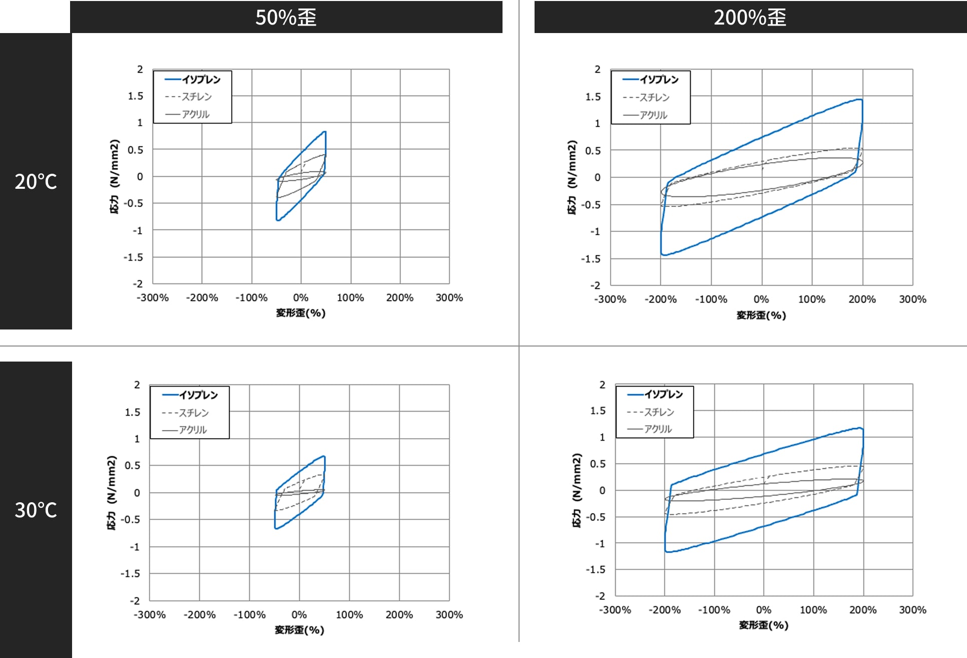 ※ せん断歪み200%、振動数1.0Hz、温度20℃時