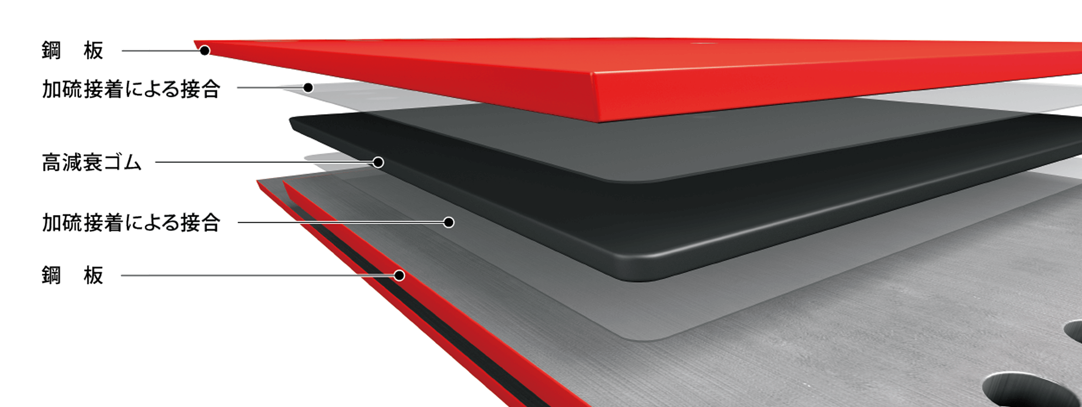 鋼板と高減衰ゴムの接合に「加硫接着」を採用。