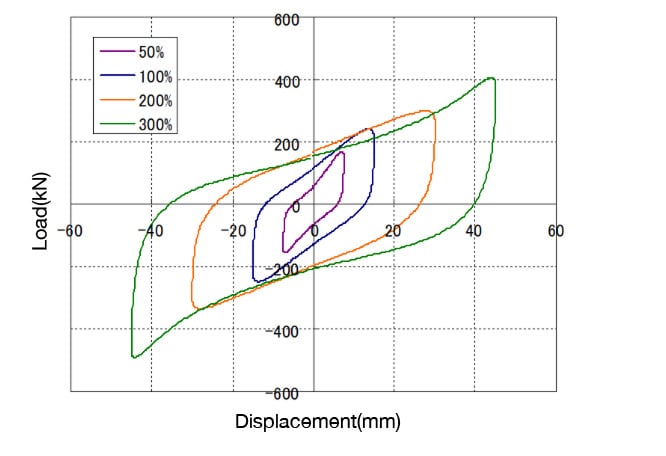 The hysteretic behavior of this viscoelastic damper can be modeled as an modified three-element model (plastic element, elastic element, and viscous element) under the conditions of strain (amplitude), temperature, and frequency within the applicable range of the technology.