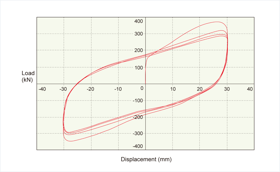 These characteristics show that our building-specific vibration-control damper has a high energy-absorption performance with regards to minute deformation.