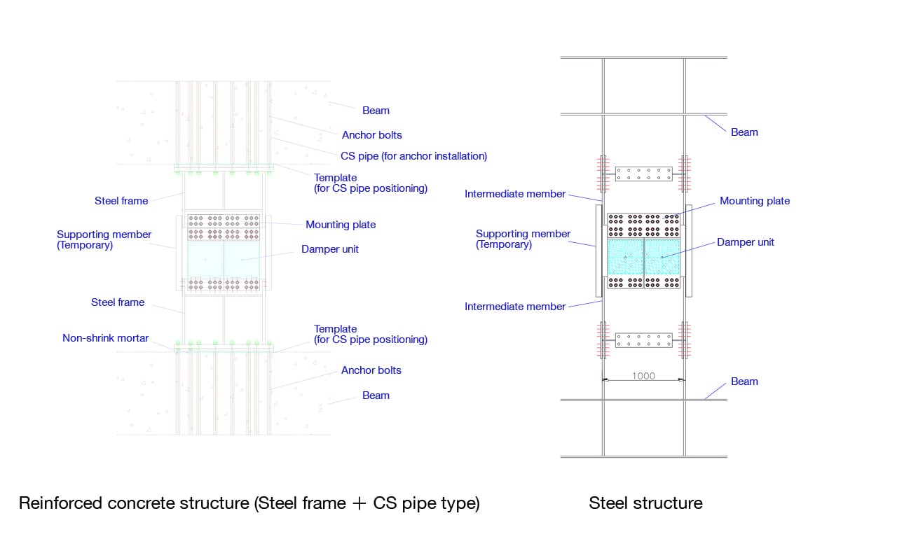 The building dampers adopting the high-damping rubber technology "GRAST" are currently used in a wide variety of buildings—including reinforced concrete, steel structures, and vibration control or seismic isolation buildings—thanks to their flexible usability. They also contribute to reducing construction costs.