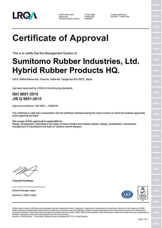 Our vibration dampers have been recognized for systematic product quality management and efforts to enhance customer satisfaction, and we obtained ISO 9001 certification, the quality management standard of the International Organization for Standardization (ISO), in April 2025.