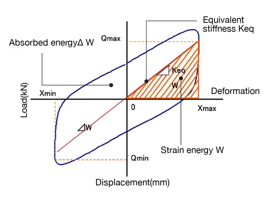 - Equivalent stiffness \(Keq\) , Absorbed energy \(ΔW\) , Strain energy \(W\)