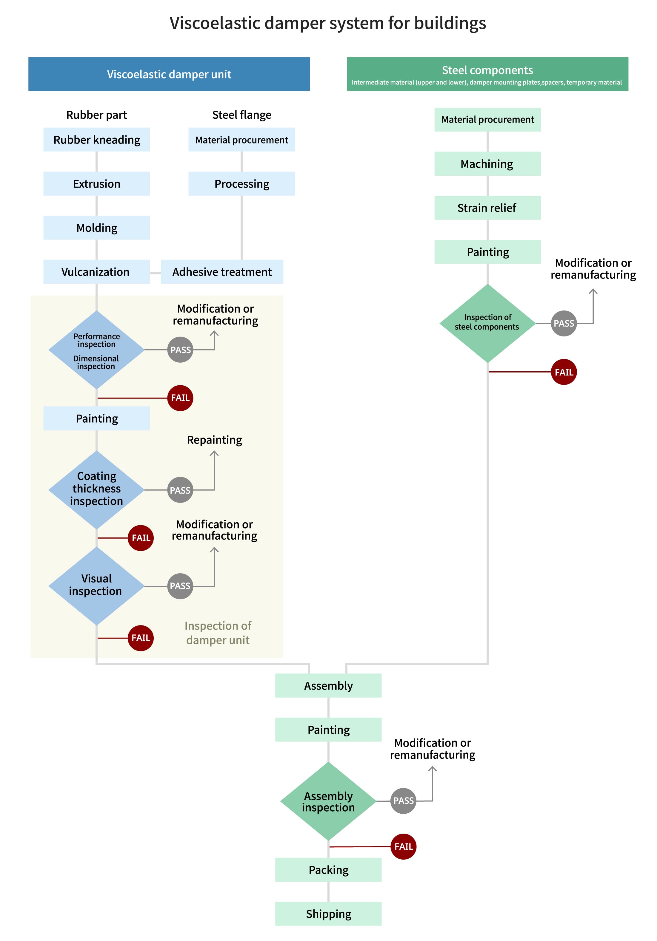 | Viscoelastic damper unit | In accordance with the paint used | We measure the coating thickness using an electromagnetic coating thickness gauge. | 100% of items |